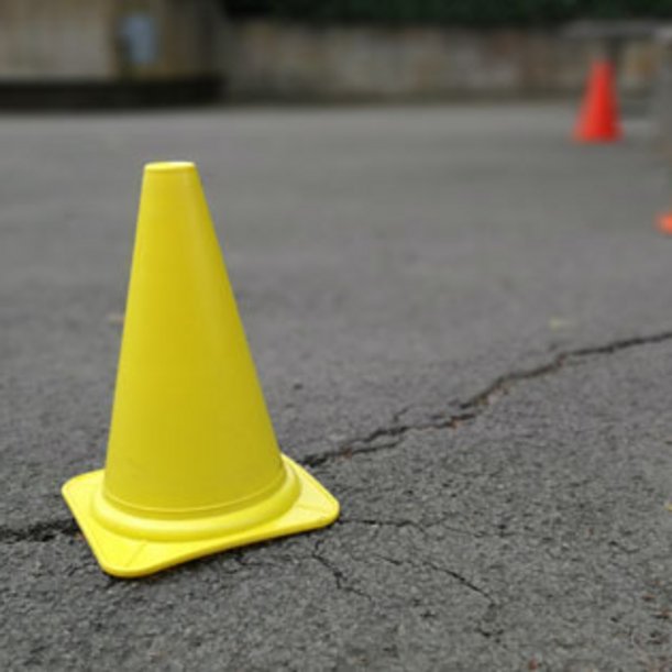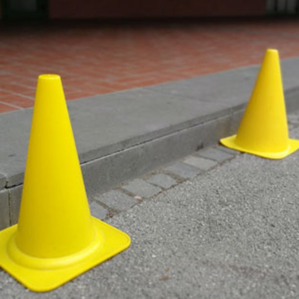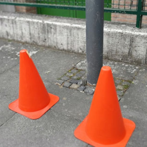 Sollten auf der Übungsfläche Pfosten oder Poller stehen, die die Sicherheit der Schülerinnen und Schüler bei den Übungen gefährden, sind diese ausreichend zu kennzeichnen, um Zusammenstöße zu vermeiden. Mit Pylonen kann auf diese Gefahrenstelle hingewiesen werden.